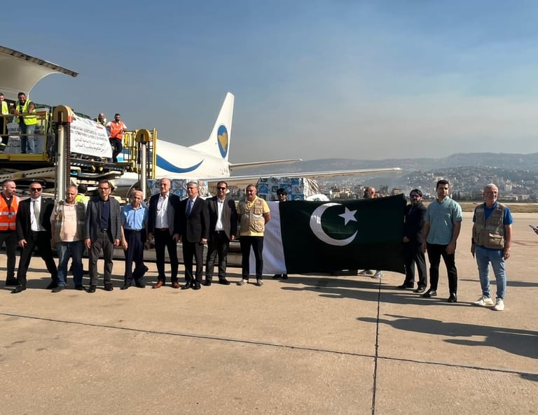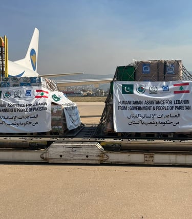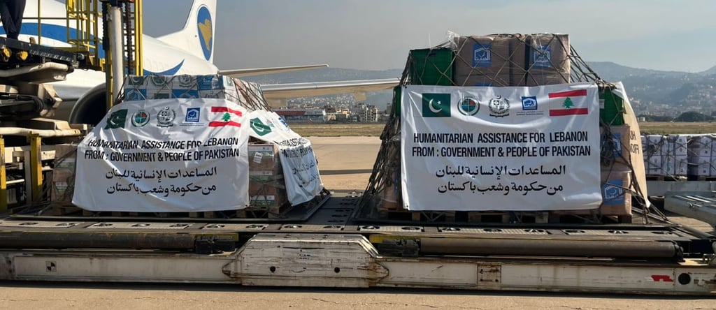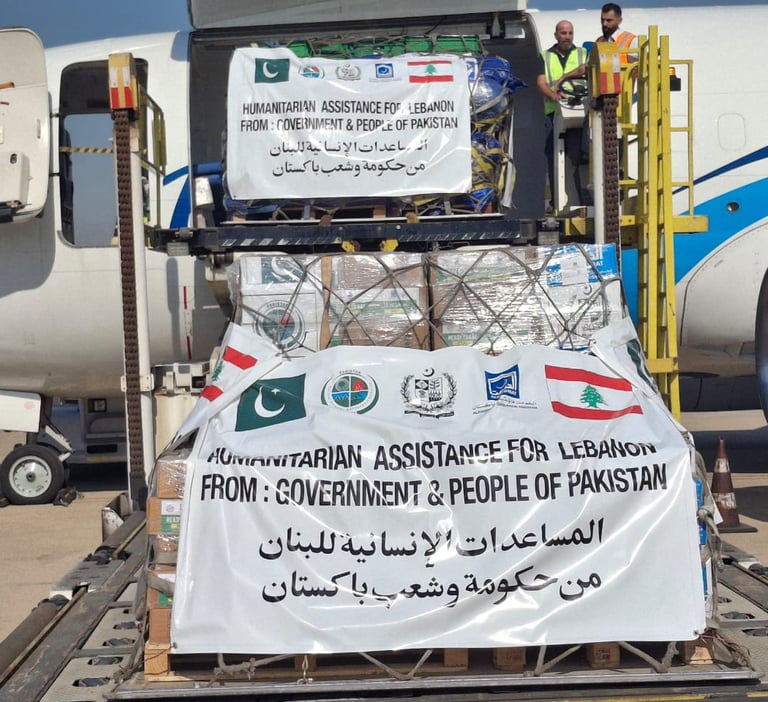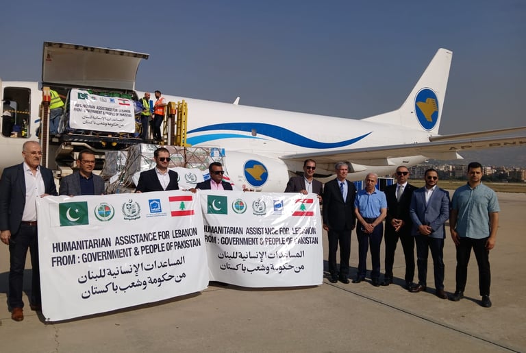 وصلت اليوم إلى مطار رفيق الحريري الدولي في بيروت طائرة شحن خاصة من باكستان تحمل 17 طناً من المساعدات الإنسانية مقدمة من حكومة باكستان وشعبها إلى الشعب اللبناني الشقيق. وتأتي هذه الجهود الإغاثية استجابة لتوجيهات رئيس وزراء باكستان محمد شهباز شريف، مؤكداً التزام باكستان بدعم لبنان في الظروف الصعبة التي تمر بها البلاد. وتضم شحنة المساعدات الخيام والحليب المجفف والأطعمة المعلبة والحزم العائلية التي تتضمن أدوات منزلية وملابس مقدمة من قبل الهيئة الوطنية لإدارة الكوارث في باكستان (NDMA)، بالتنسيق مع مؤسسة الخدمات الباكستانية.