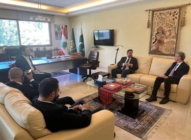 Ambassador Salman Athar was honored to receive at the Embassy H.E. Amin Salam, Minister of Economy and Trade of the Republic of Lebanon. Both sides discussed the current domestic and regional situation Ministry of Foreign Affairs, Islamabad Office of the Spokesperson, Mofa Pakistan.