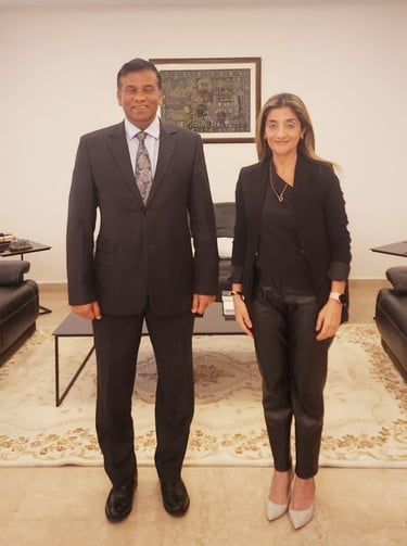 Joelle Antoine Aziz, the Sworn Translator and founder of Joelle Aziz Translation Firm and the media platform www.signaturebyj.com, recently paid a courtesy call to His Excellency the Ambassador of Bangladesh to Lebanon, Air Vice Marshal Javed Tanveer Khan. The visit aimed to introduce the Ambassador to the media platform SignaturebyJ and to explore potential avenues for collaboration in the upcoming year.