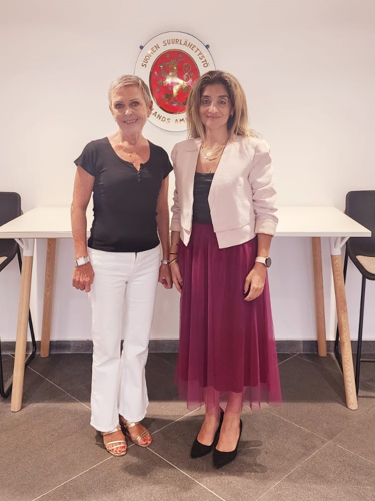 Joelle Antoine Aziz, the founder of the media platform www.signaturebyj.com, recently paid a courtesy call to H.E. Ambassador of Finland to Lebanon Mrs. Anne MESKANEN.