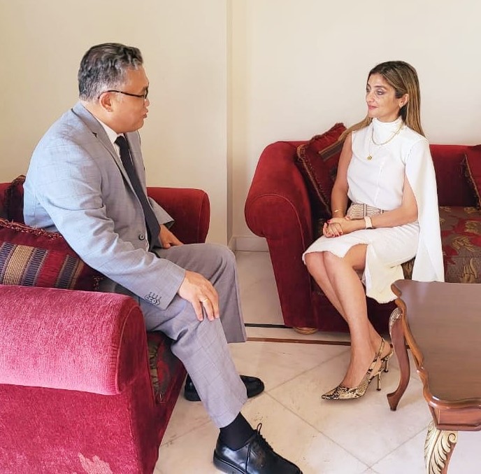During the meeting, Ms. AZIZ expressed her heartfelt gratitude to Ambassador JUMALY for his dynamic and dedicated efforts in promoting Kazakhstan in Lebanon. She commended the ambassador's pivotal role in organizing a variety of cultural activities that have significantly enhanced the visibility and appreciation of Kazakhstan's rich cultural heritage within the Lebanese community.