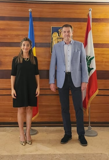 The Sworn Translator, Joelle Antoine AZIZ, founder and owner of Joelle Aziz Translation Firm and www.signaturebyj.com media platform, recently paid a courtesy call to H.E. Ambassador of Romania to Lebanon, Mr. Radu Cătălin Mardare. The primary purpose of this visit was to discuss future media projects for the coming year and to reflect on the successful initiatives of the past year. She expressed her heartfelt gratitude to the energetic and active ambassador for his dedicated efforts in promoting Romania in Lebanon through a variety of cultural activities and Romanian film screenings organized by the embassy.