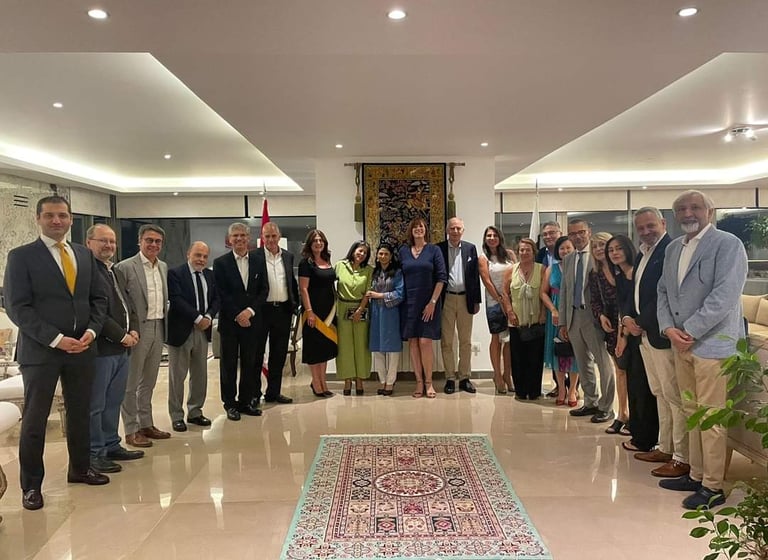 H.E. MP Fadi Alame, Chairman of the Foreign Relations Commiittee of Lebanese Parliament as well as Ambassadors of friendly countries including France, Uruguay, Canada. Oman , Kazakhstan, Antigua and Barbuda attended the dinner with their spouses Public Diplomacy Pakistan