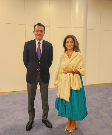 On this 5th day of July 2024, one day after the summit, they had the opportunity to meet with Mr. Yerzhan Yerkinbayev, the Vice-Minister of Tourism and Sports of the Republic of Kazakhstan.